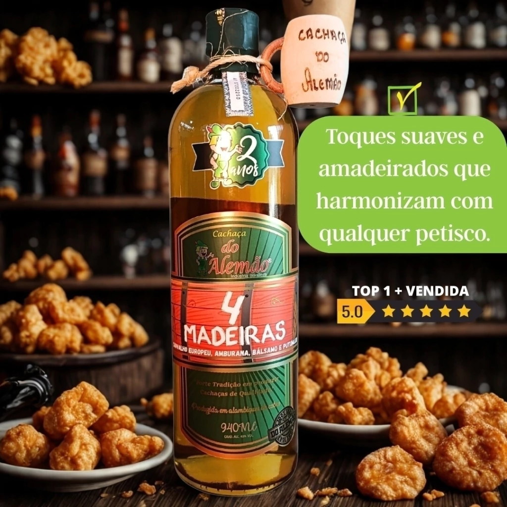 🥇 CACHAÇA DO ALEMÃO® – Blend 4 Madeiras (940ml) + Copinho de Presente